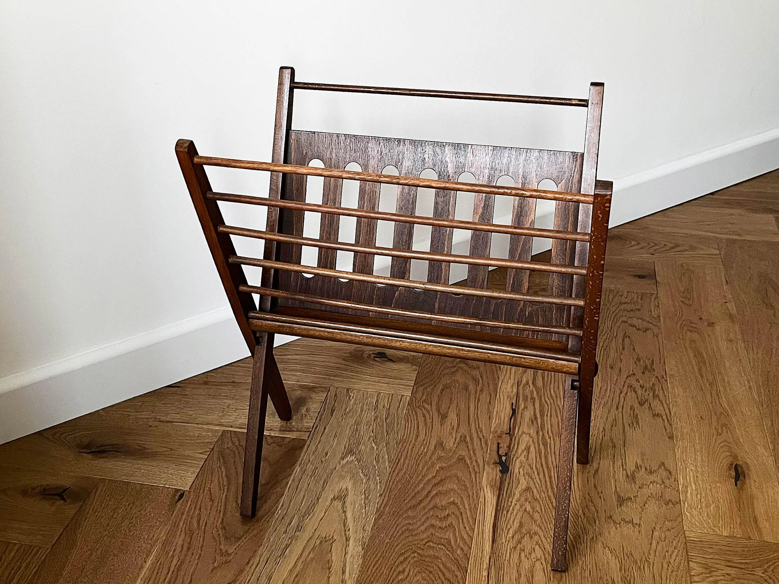 Perfect for storing magazines, newspapers, or even vinyl records, this rack combines practicality with timeless style. Its solid wood construction and minimalist design make it a standout accessory for modern and mid-century interiors alike.